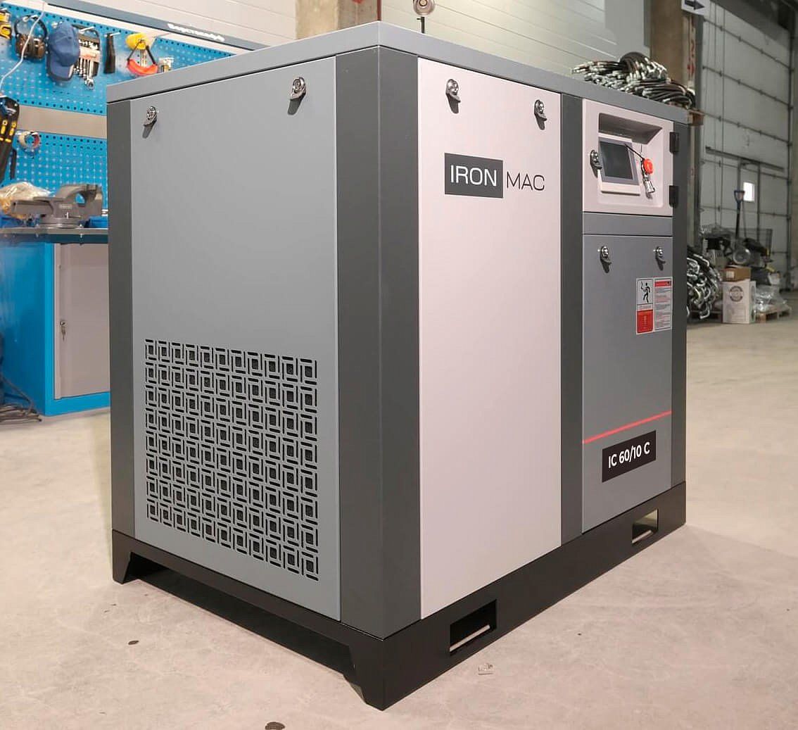 Винтовой компрессор IronMac IC C из профессиональной линейки, собран на прочной стальной раме. Компрессор предназначен для малых и средних предприятий, а все узлы конструкции фиксируются к жесткому основанию и дополнительно изолируются от вибраций. На серии IC C реализована система привода - муфта, а двигатель имеет уровень защиты по классу IP55 с высокой степенью эффективности отведения тепла.